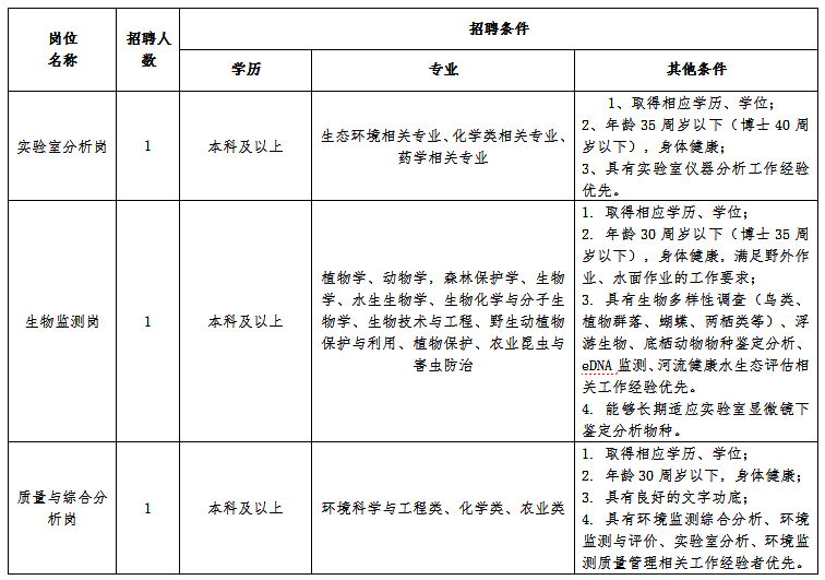 江蘇省泰州環(huán)境監(jiān)測中心為全額撥款事業(yè)單位,隸屬于江蘇省生態(tài)環(huán)境廳,是從事生態(tài)環(huán)境監(jiān)測和科研,為環(huán)境管理和社會經(jīng)濟(jì)服務(wù)的環(huán)境監(jiān)測機(jī)構(gòu)。根據(jù)工作需要,現(xiàn)面向社會招聘3名工作人員,派遣至江蘇省泰州環(huán)境監(jiān)測中心從事與環(huán)境監(jiān)測相關(guān)工作。具體要求如下:
